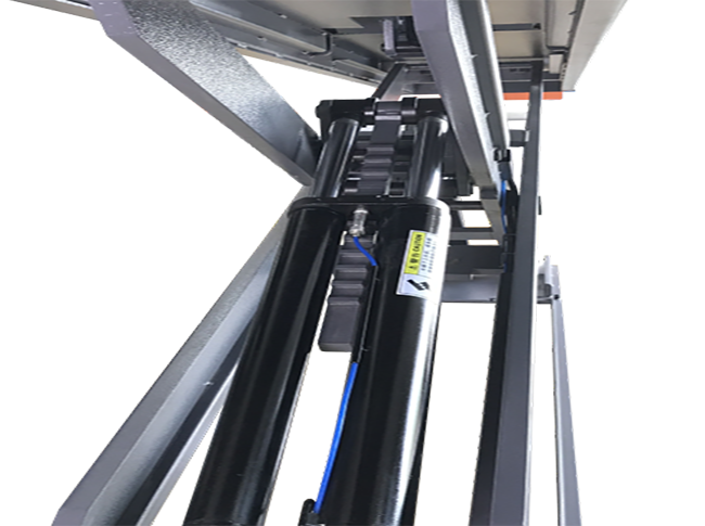 ◆整機6油缸設計,液壓同步,雙液壓系統、液壓鎖和機械三重保險裝置,下降自動解鎖。